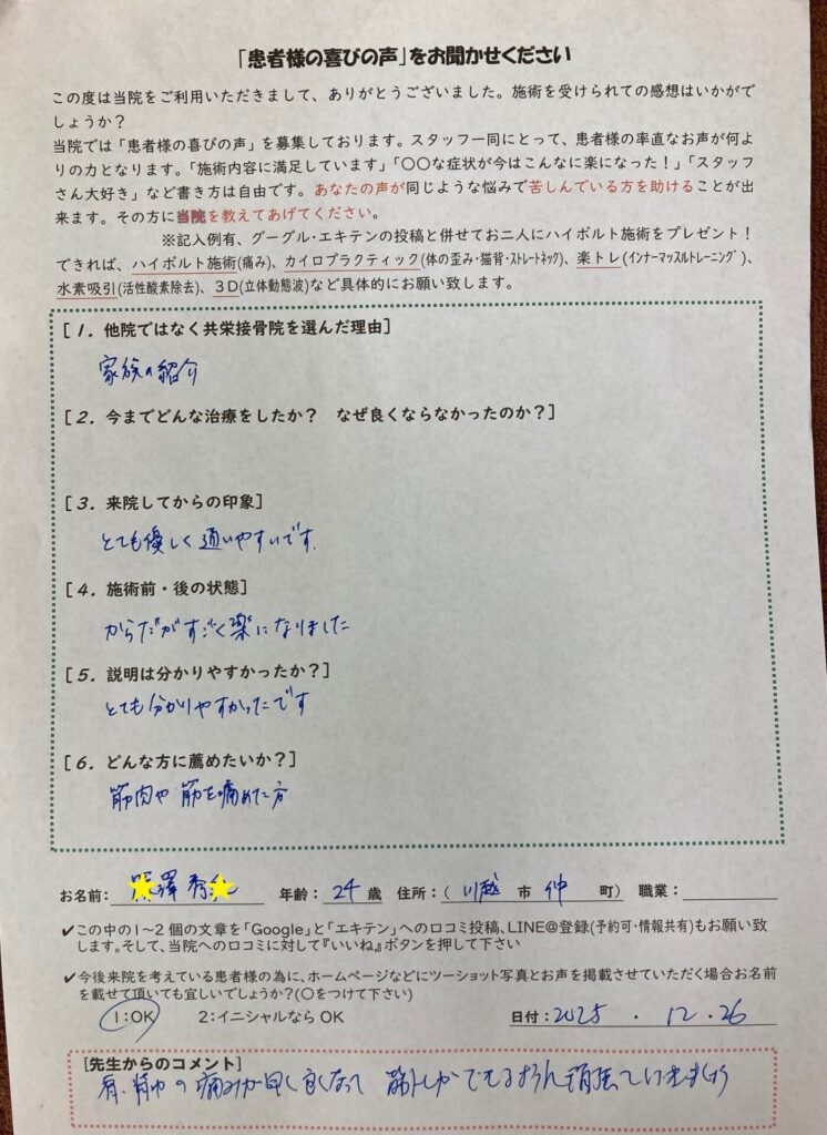 からだがすごく楽になりました